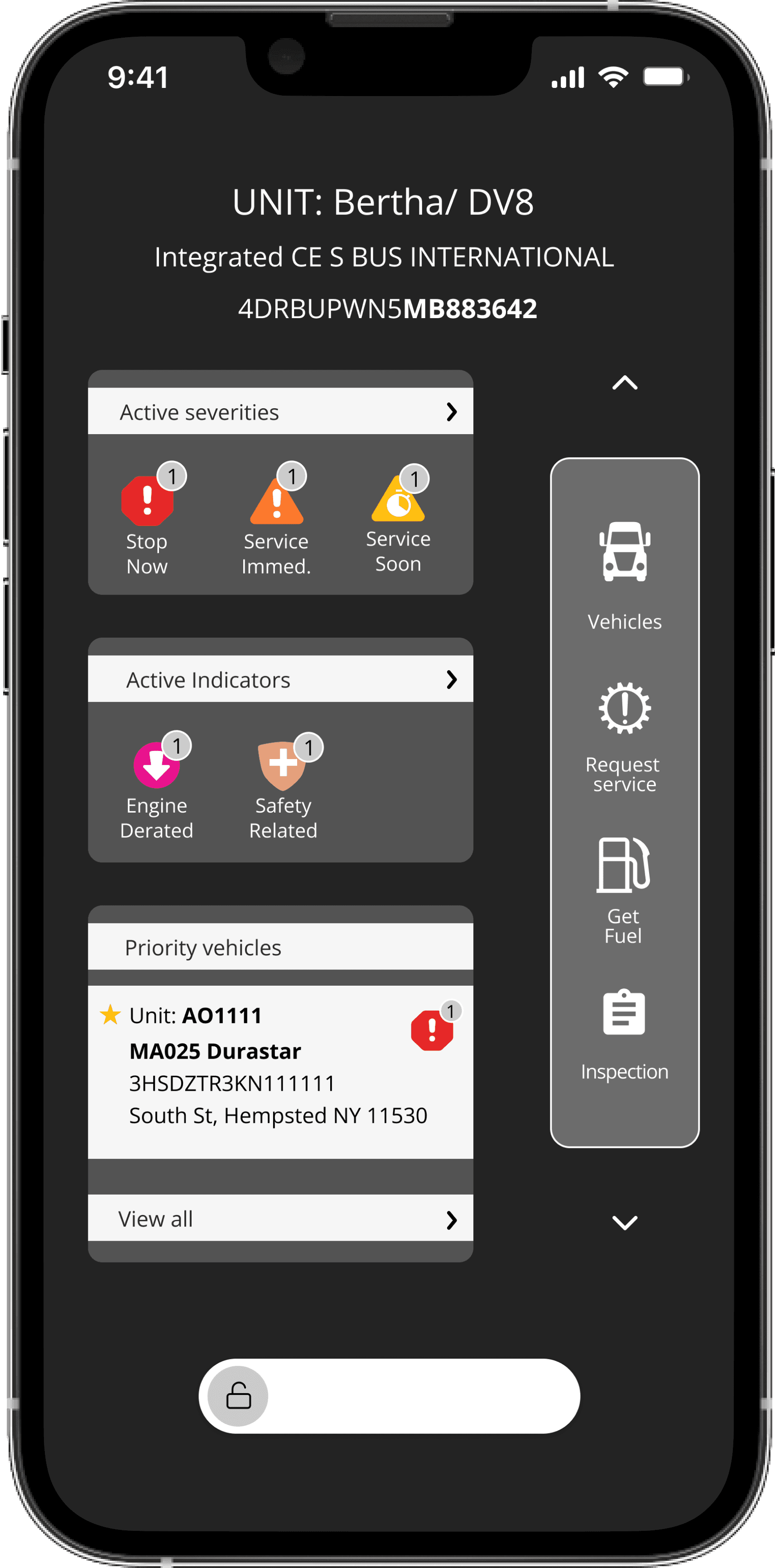 A cohesive system that connects vehicle insights, services, and records into one clear flow. The prototype was successfully tested with product owners, validated across key use cases, and adopted for implementation setting the foundation for Navistar’s new vehicle management experience.